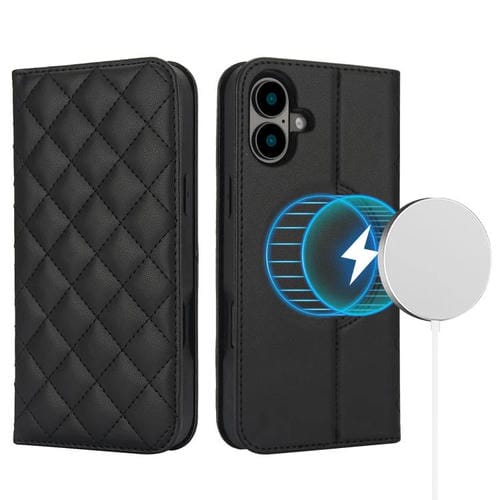 Funda de cuero Rhombic MagSafe RFID antirrobo para iPhone 17 (negra)