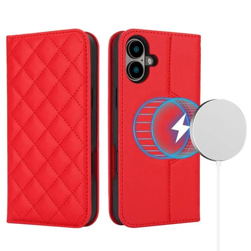 Funda de cuero con protección RFID antirrobo Rhombic MagSafe para iPhone 17 (roja)