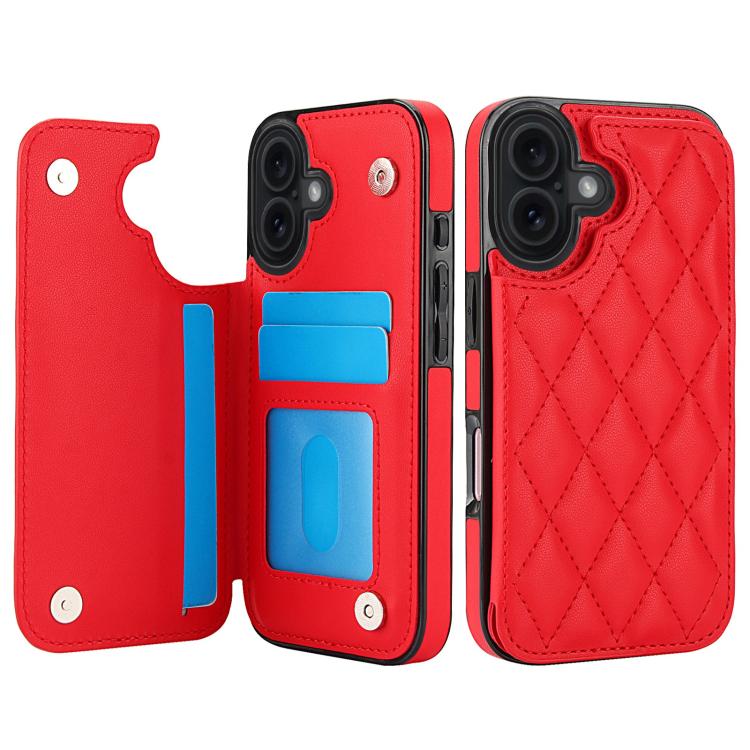Funda de piel sintética con doble hebilla y diseño rómbico para iPhone 17 (roja)