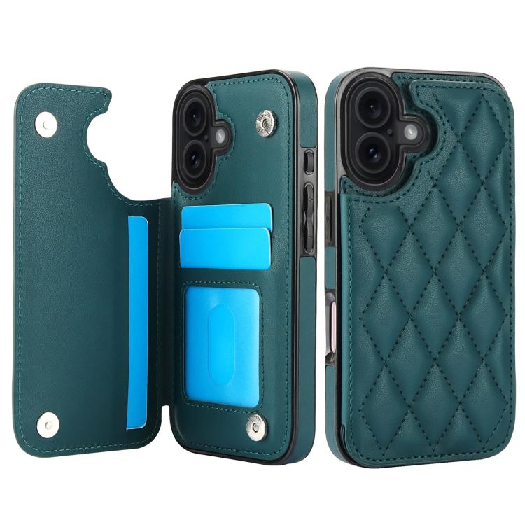 Funda de piel sintética con doble hebilla y diseño rómbico para iPhone 17 (verde)