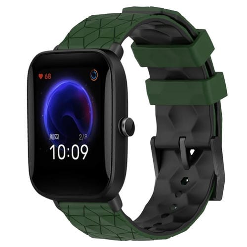 Banda de Reloj silicona para Amazfit Pop 20mm textura fútbol (Verde Militar + Negro)