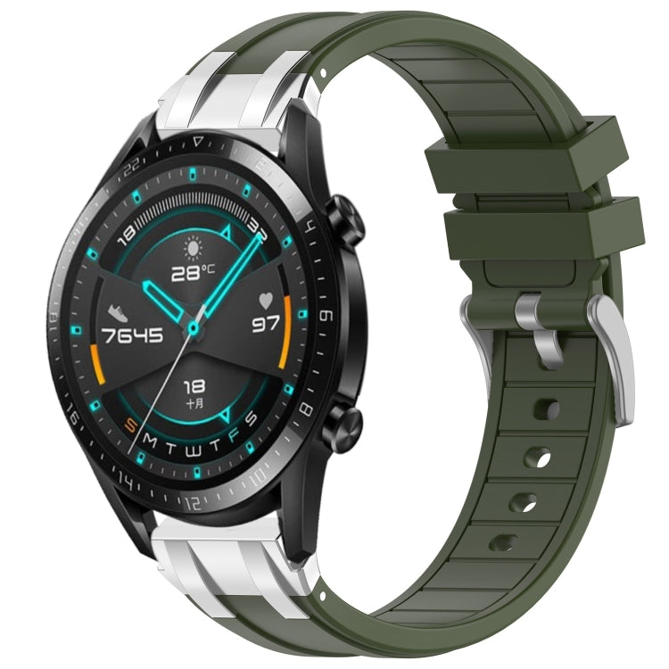 Correa de Silicona Huawei Watch GT2 46mm 22mm con Hebilla Plateada (Verde Oliva)