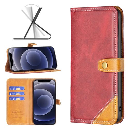 Funda para iPhone 12 Mini Bf13 Color Matching Cross Texture Leather Phone Case (Rojo)