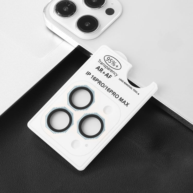 Película Protectora de Lente HD con Diamante para iPhone 16 Pro/16 Pro Max (Azul Claro)