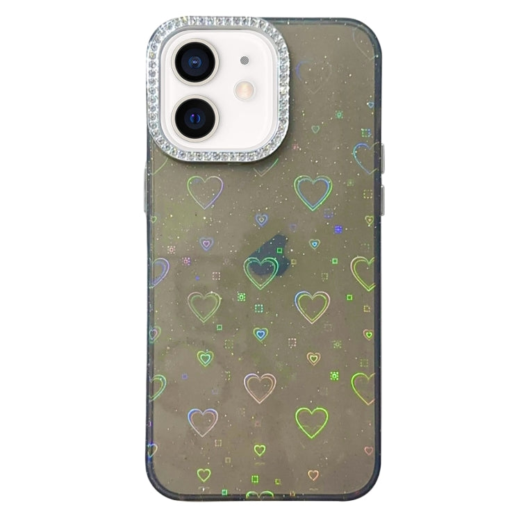 Caja de telĂ©fono para iPhone 11 Love Pattern Diamond Lens Frame Imd de AcrĂlico (Negro)