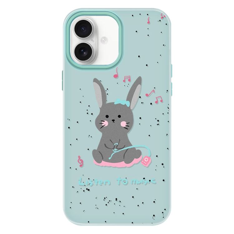 Funda híbrida TPU y PC iPhone 16 Conejo para Escuchar Música (Verde Claro)