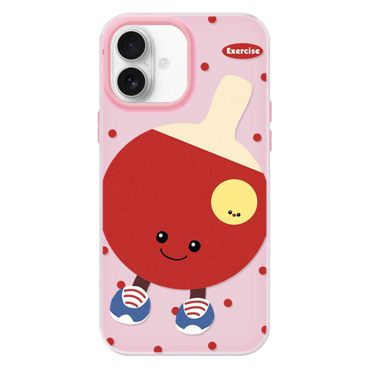 Funda híbrida TPU Policarbonato iPhone 16 Plus Tacto sedoso (Rosa Spin Table Tennis)