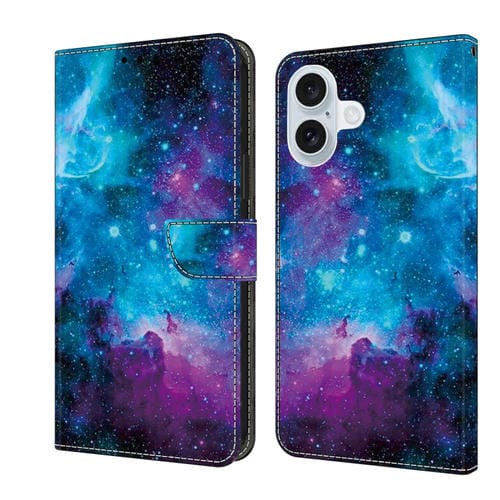 Funda de Cuero Pintada con Cristales para iPhone 16 Plus (Cielo Estrellado)