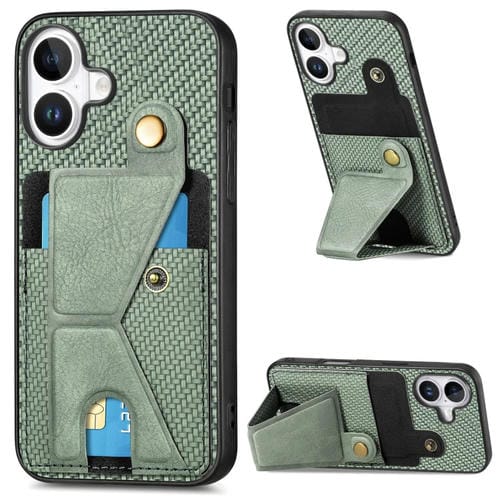 Funda Tipo Billetera Fibra de Carbono con Tapa Tipo K para iPhone 16 Plus (Verde)