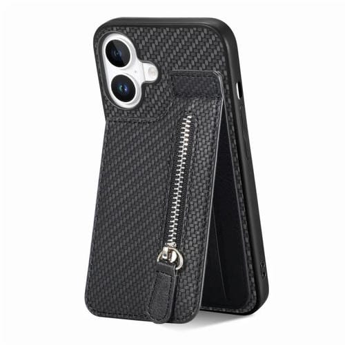 Funda de Fibra de Carbono para iPhone 16 Plus con Cremallera Vertical (Negra)