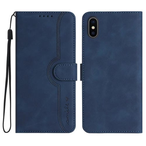 Estuche para Teléfono iPhone X/Xs Cuero Patrón Corazón Sensación de Piel (Azul Real)