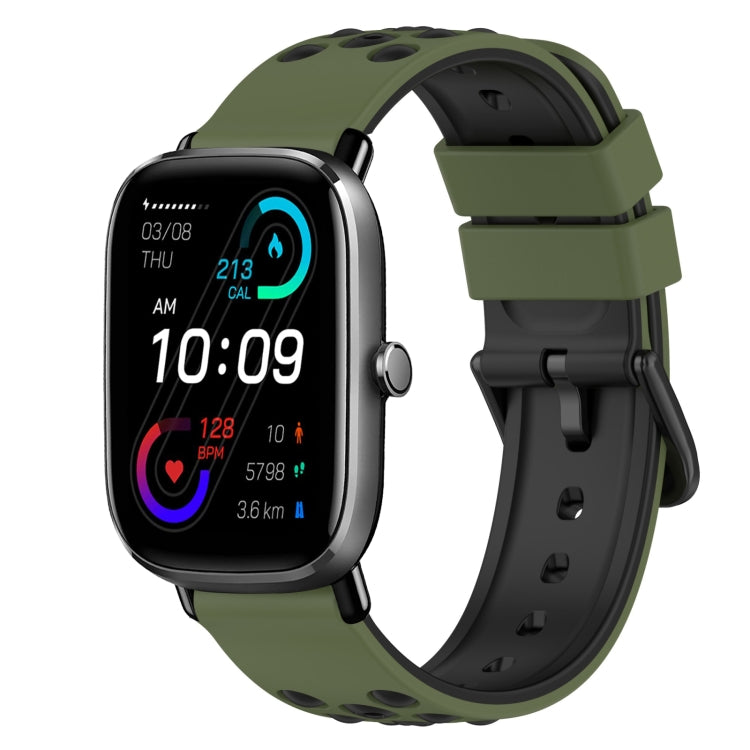 Correa de Silicona Porosa para Amazfit GTR 2E 22mm (Verde Militar + Negro)