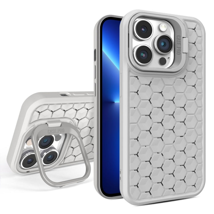 Funda magnética para teléfono iPhone 13 Pro Honeycomb Radiating Lens Holder (Gris)