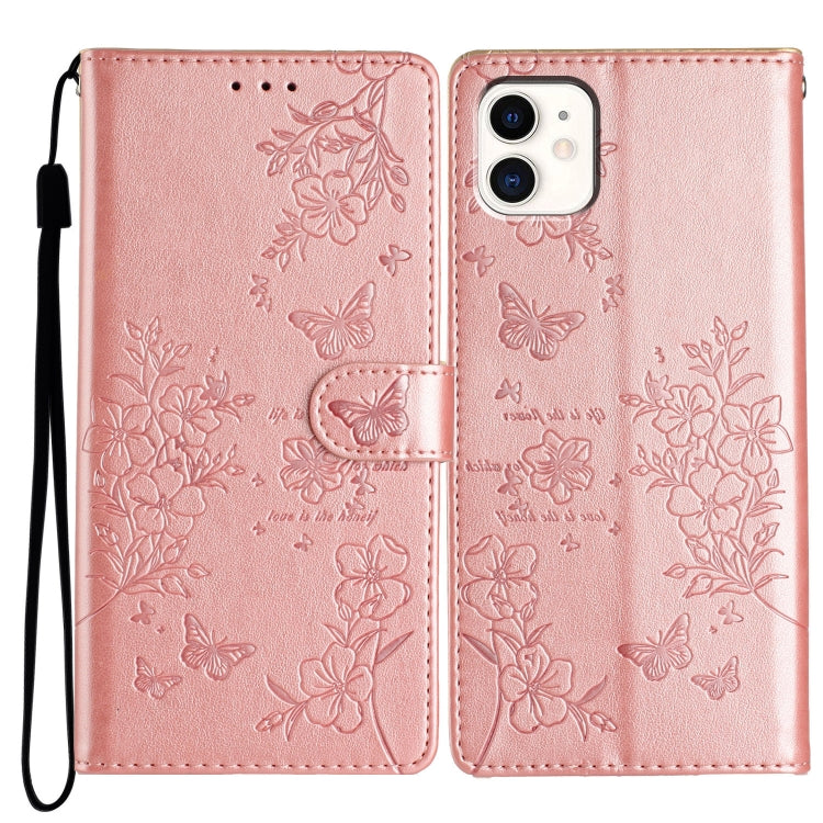 Funda para Teléfono iPhone 11 Cuero Relieve Flor de Amor y Mariposa (Oro Rosa)