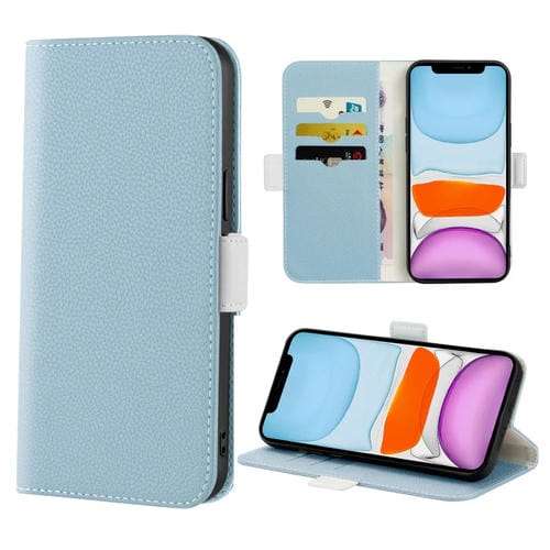 Funda de Cuero iPhone 11 Candy Color Litchi Texture para Teléfono (Azul Claro)