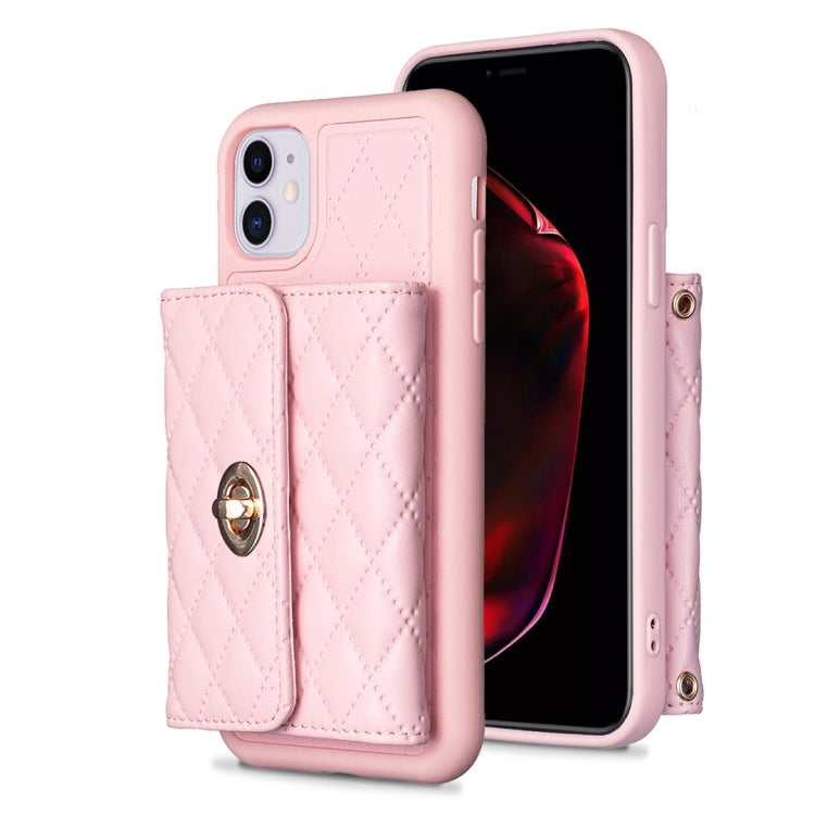 Funda Cartera iPhone 11 Hebilla Metal Horizontal Estuche Cuero Rómbico (Rosa)