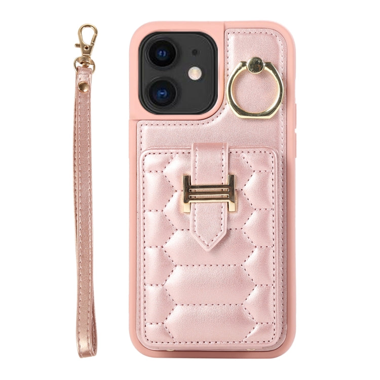 Funda para iPhone 11 Vertical Card Bag Ring Holder con Doble Cordón (Oro Rosa)