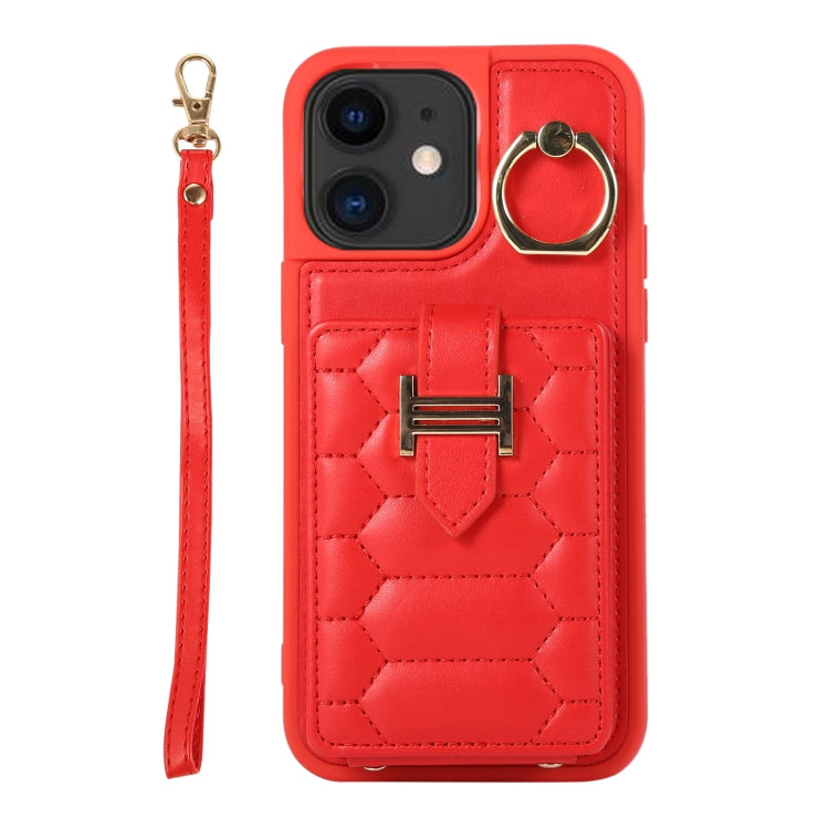 Funda para iPhone 11 Vertical Card Bag Ring Holder con Doble Cordón (Rojo)