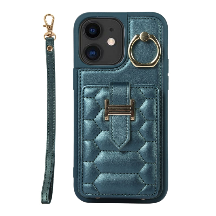 Funda para iPhone 11 Vertical Card Bag Ring Holder con Doble Cordón (Verde Oscuro)