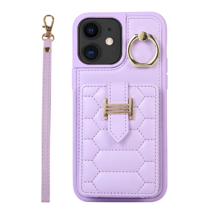 Funda para iPhone 11 Vertical Card Bag Ring Holder con Doble Cordón (Púrpura)