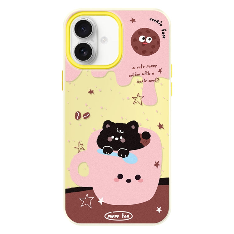 Funda híbrida TPU y Policarbonato iPhone 16 Cachorro taza de té (Amarillo)