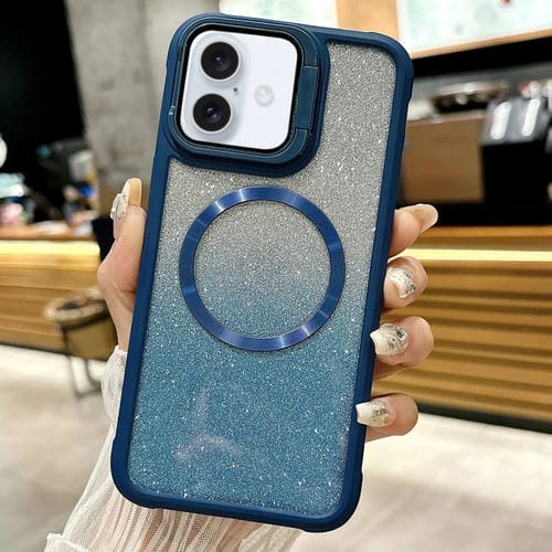 Funda para iPhone 16 Plus con Soporte Deslizante de TPU y PC (Azul Marino)
