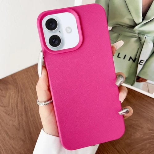 Funda de Teléfono TPU con Textura de Cuero para iPhone 16 Plus (Rosa Rojo)