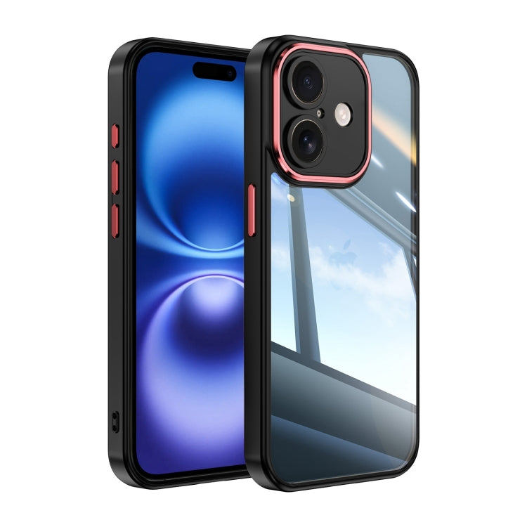Funda híbrida Acrílico TPU para iPhone 16 Plus a prueba de golpes (Negro y Rojo)