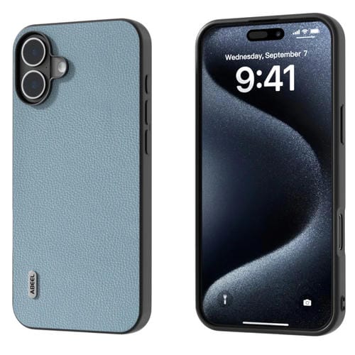 Estuche para teléfono Abeel iPhone 16 Plus Cuero Genuino con Marco Negro (Azul)
