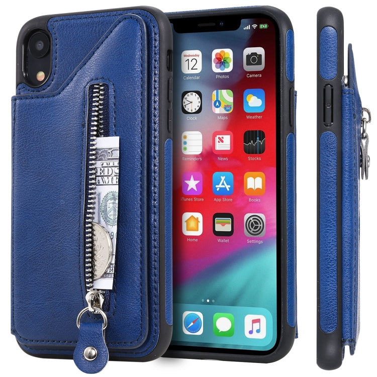 Funda Protectora para iPhone Xr Doble Hebilla Cremallera a Prueba de Golpes (Azul)