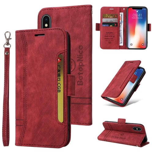 For iPhone X/XS BETOPNICE Double-sided Buckle Leather Phone Case (Purple)