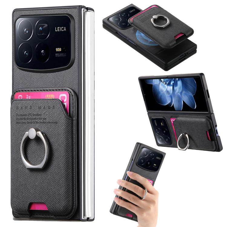 Funda magnética con anillo para Xiaomi Mix Fold 4, de tela sarga, color negro