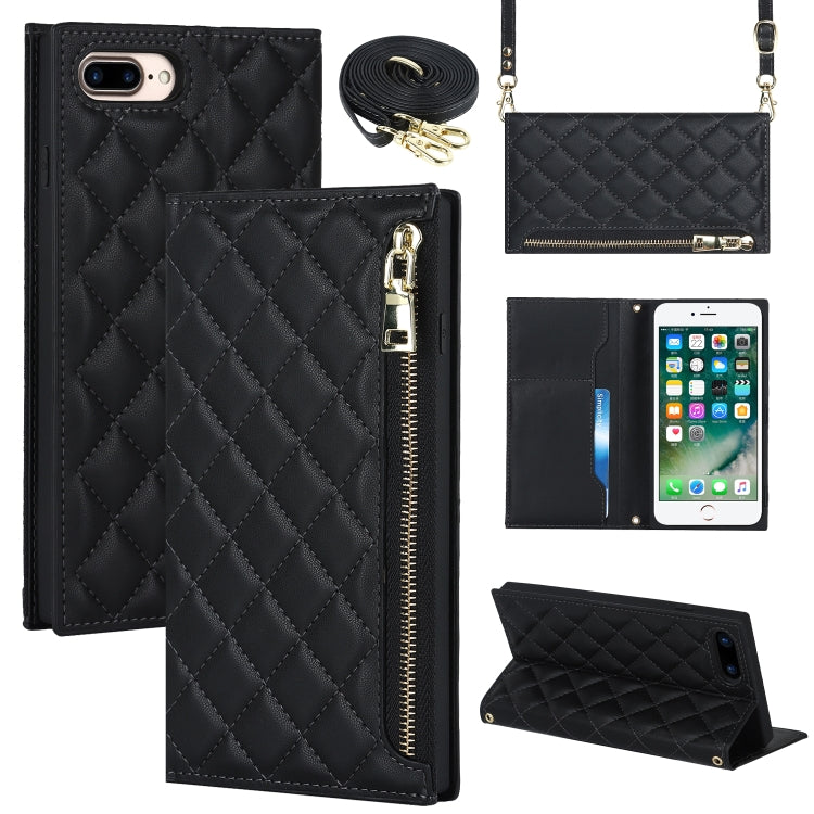 Funda de Cuero con Cremallera para iPhone 8 Plus y 7 Plus Grid Texture (Negro)