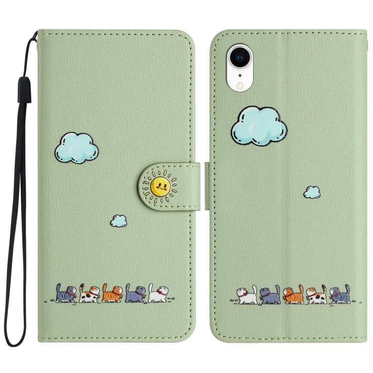 Funda de Cuero para Teléfono iPhone Xr con Gatos de Dibujos Animados (Verde)