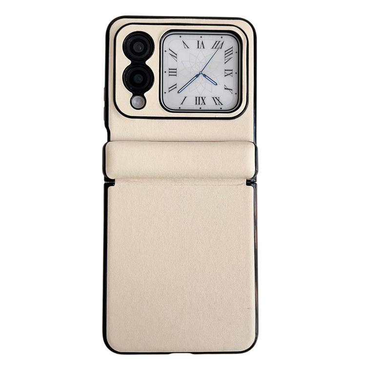 Funda de Cuero para Huawei Nova Flip con Textura y Eje Magnético Integrado (Beige)