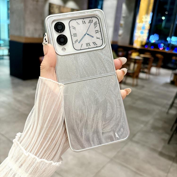 Funda Plegable Huawei Nova Flip Silver Edge con Hilo de Plumas (Plateada)