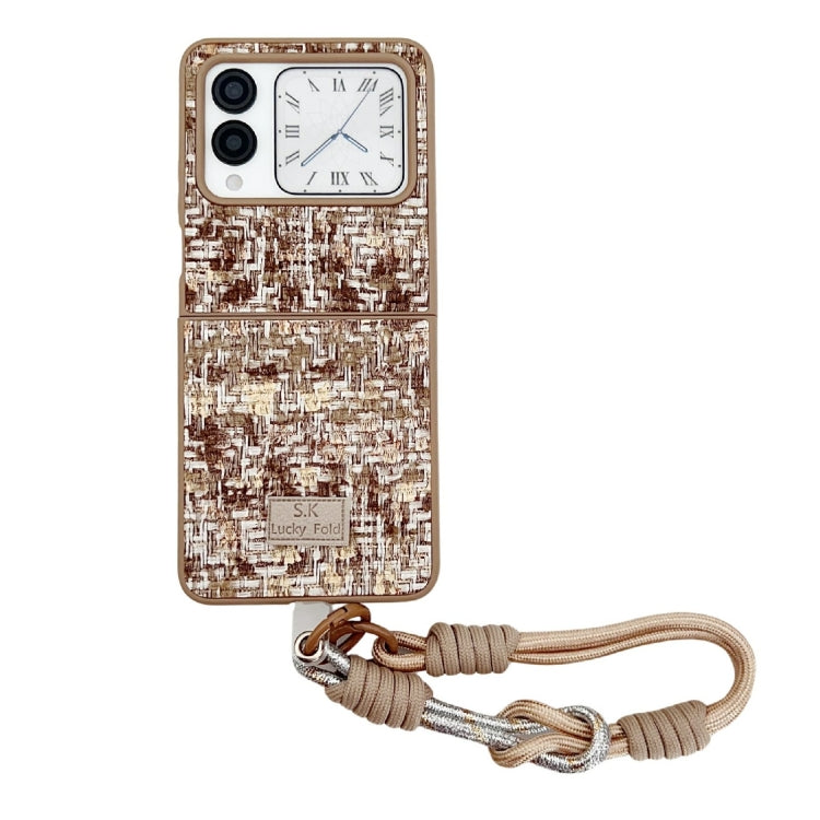 Funda para Teléfono Huawei P50 Pocket Textura de Tejido con Correa (Marrón)