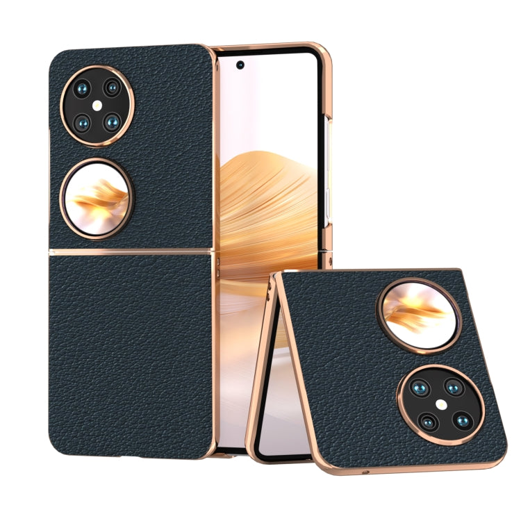 Funda de Teléfono Huawei Mate 60 Pro con Textura Litchi de Cuero Genuino (Negro)