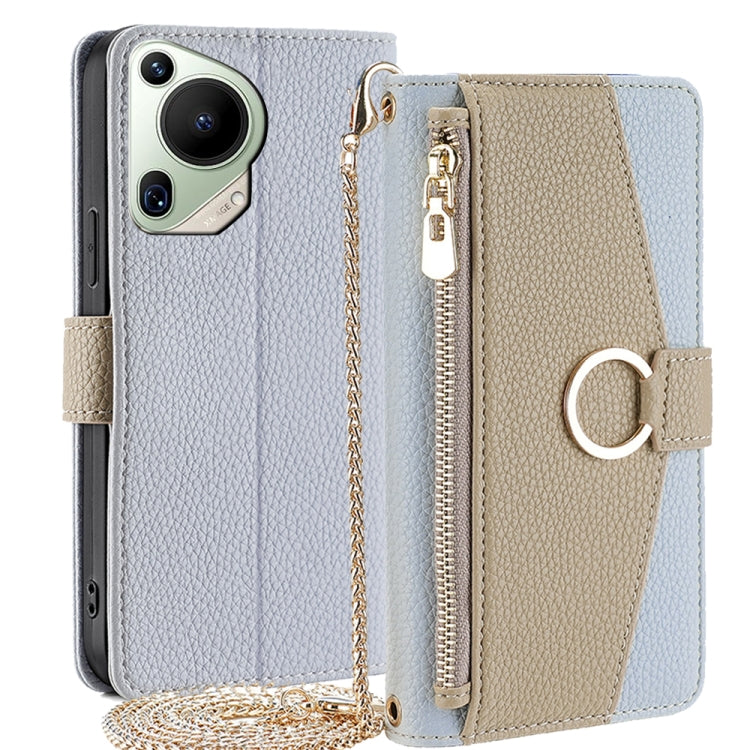 Funda de Cuero Crossbody para Huawei Pura 70 5G con Textura Litchi (Azul)