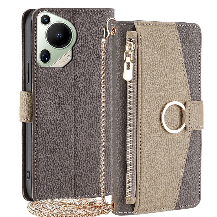Funda para Huawei Pura 70 Ultra 5G de Cuero con Textura Litchi Cruzada (Gris)