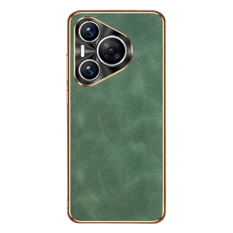 Funda para Huawei Pura 70 de Piel de Cordero con Galvanoplastia Ultra (Verde)