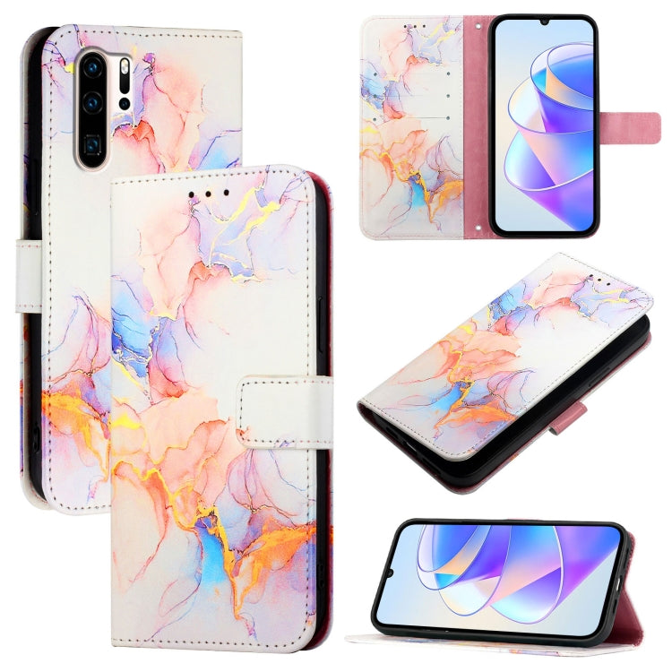 Funda de Cuero con Tapa para Huawei P30 Pt003 con Patrón de Mármol (Oro Rosa)
