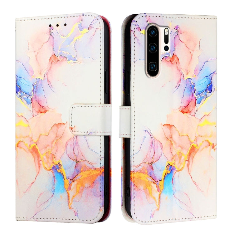 Funda de Cuero para Huawei P30 Pro Pt003 con Tapa y Patrón de Mármol (Oro Rosa)