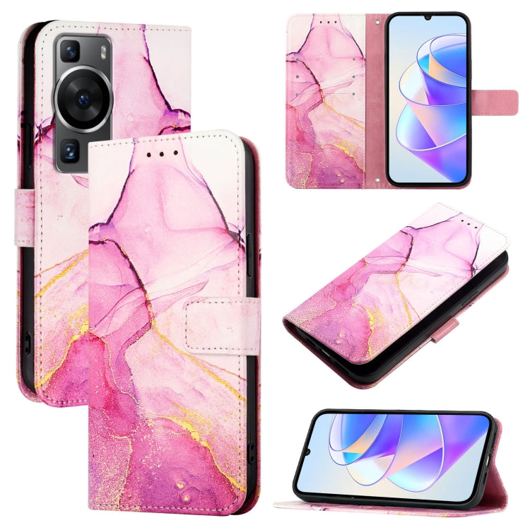 Funda de Cuero para Huawei Pura 70 Pt003 con Tapa y Patrón Mármol (Oro Rosa)