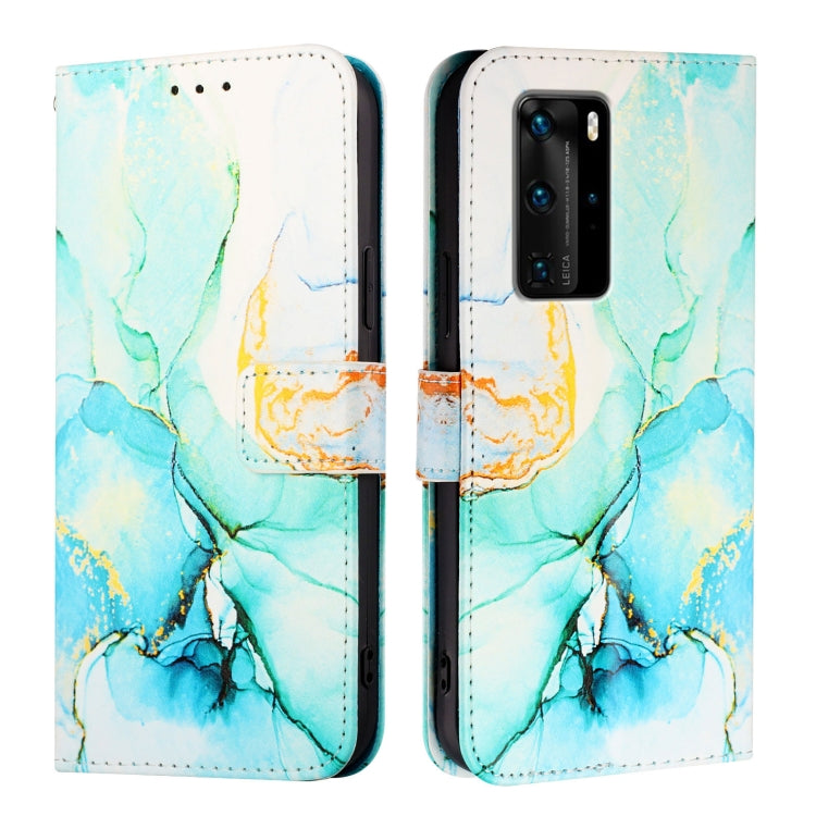 Funda de Cuero para Huawei P40 Pro Pt003 con Tapa y Patrón de Mármol (Verde)