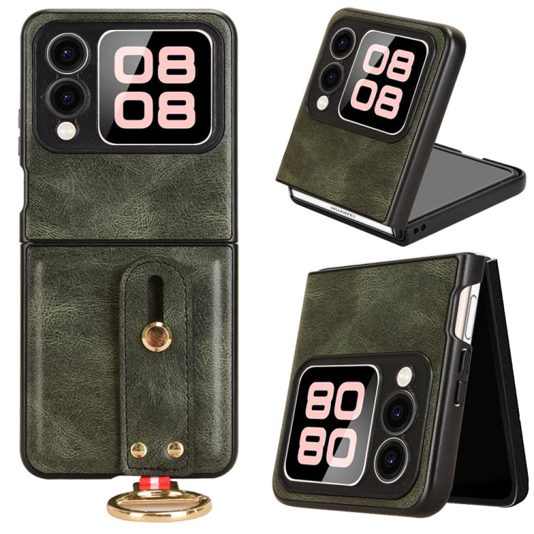 Funda para Teléfono Plegable Huawei Nova Flip con Textura Rómbica y Cordón (Verde)