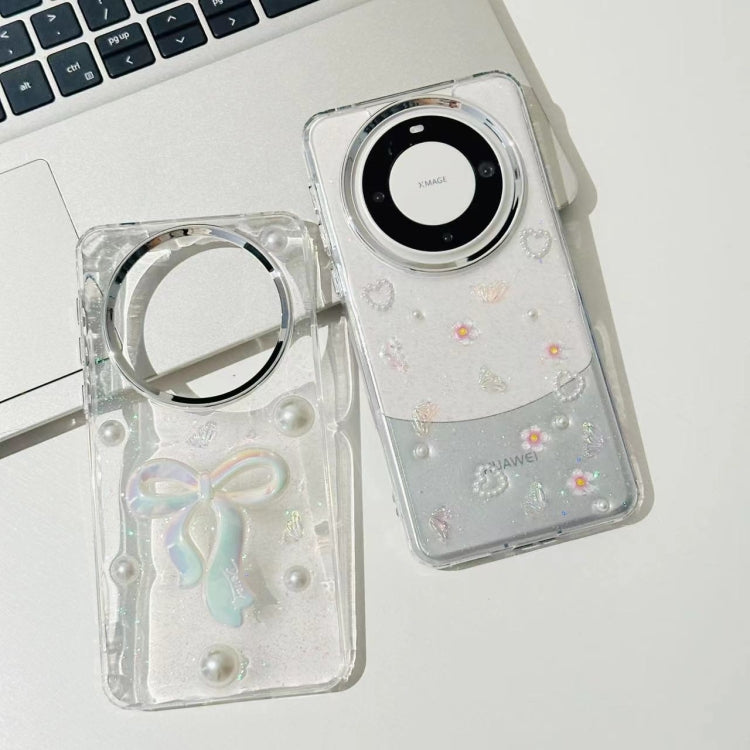 Funda para Huawei Mate 60 Pro TPU 3D Bow Pearl Love Flower (Arco de Perlas)