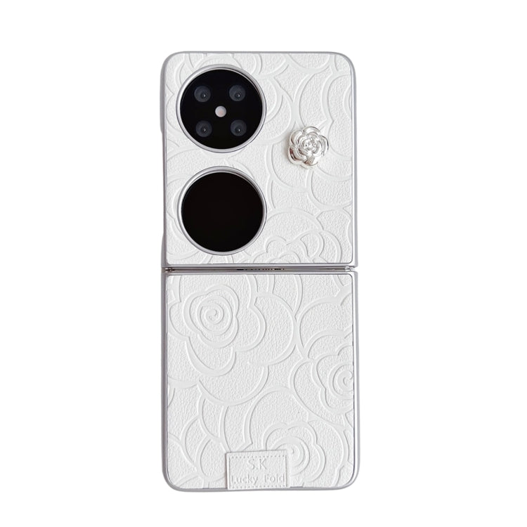 Funda para Teléfono Huawei P50 Pocket Diseño Cuadros 3D Camelia (Blanca)