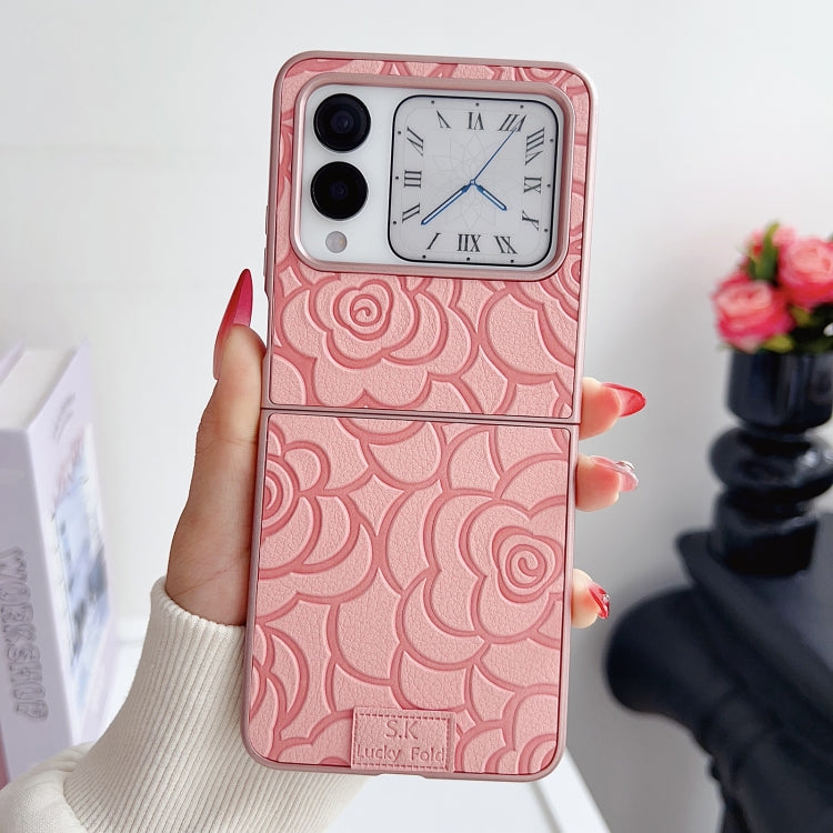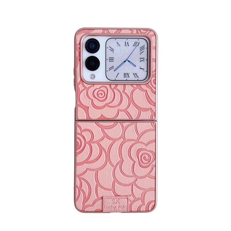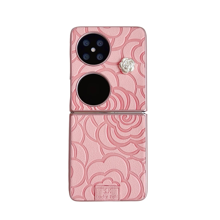 Funda para Teléfono Huawei P50 Pocket con Diseño de Cuadros 3D de Camelia (Rosa)