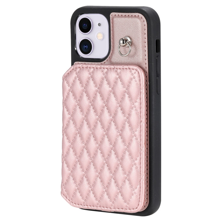 Funda para Teléfono iPhone 11 Grid Texture Card Bag con Cordón (Oro Rosa)